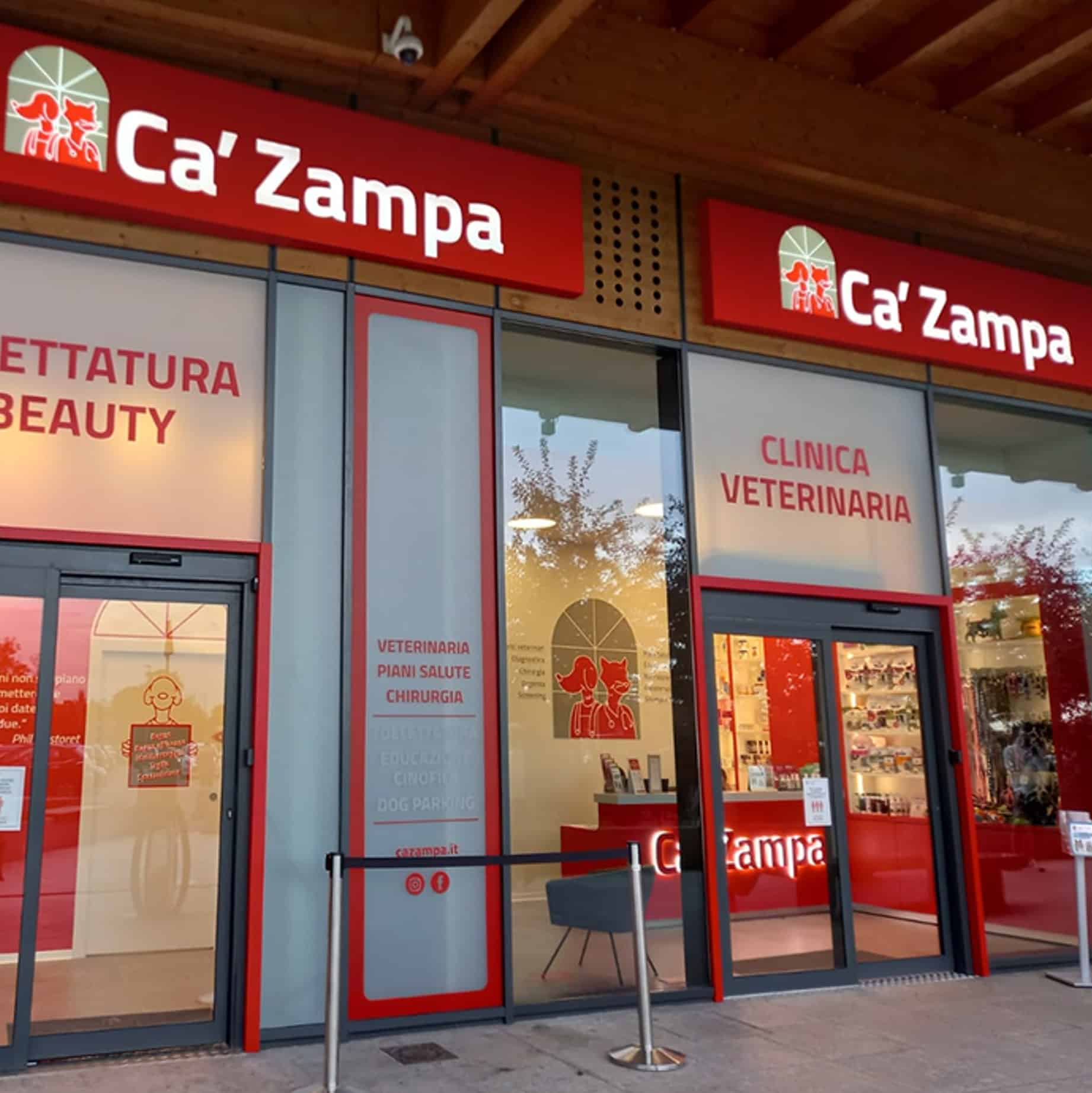All’interno della Clinica Veterinaria Ca’ Zampa si trovano 3 ambulatori veterinari, un blocco chirurgico all’avanguardia dove effettuare anche interventi di chirurgia open o mini invasiva, in laparoscopia, il laboratorio per le analisi, una sala per le radiografie. Per i cani è disponibile un comodo asilo giornaliero durante il quale il cane può effettuare attività di screening e di controllo della salute. E’ presente anche uno spazio esclusivamente dedicato ai gatti con un ambulatorio e un’area asilo riservata esclusivamente a loro. Un team dedicato si occupa anche della cura dei cosiddetti animali esotici, come piccoli roditori, uccelli e rettili. È anche possibile svolgere percorsi di educazione cinofila.