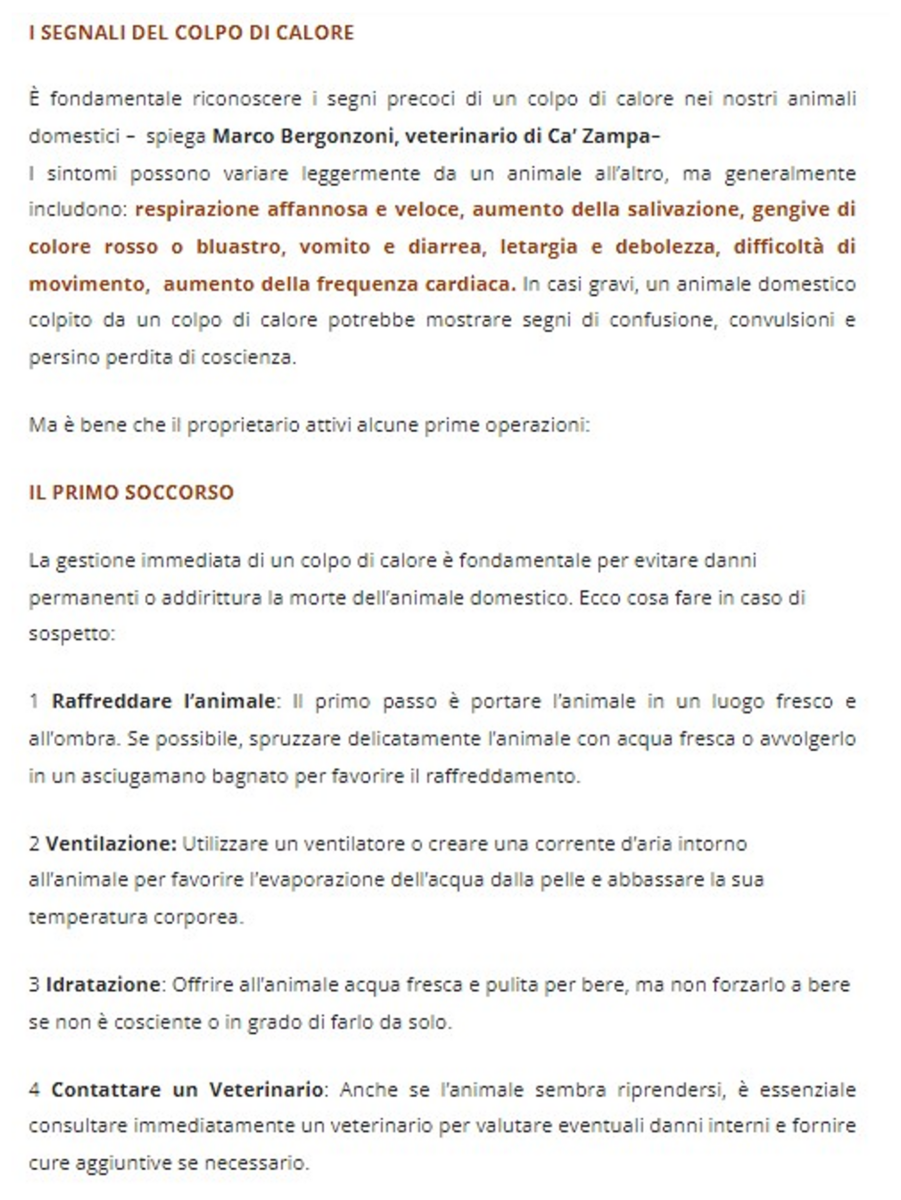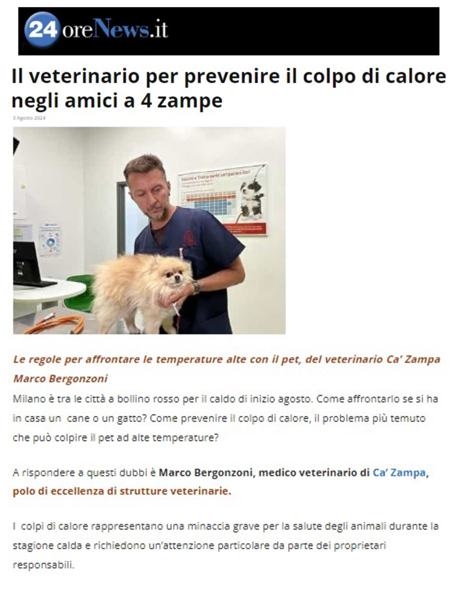 24 Ore News.it: Il veterinario per prevenire il colpo di calore negli amici a 4 zampe 3 Agosto 2024 Home » Media & News » 24 Ore News.it: Il veterinario per prevenire il colpo di calore negli amici a 4 zampe