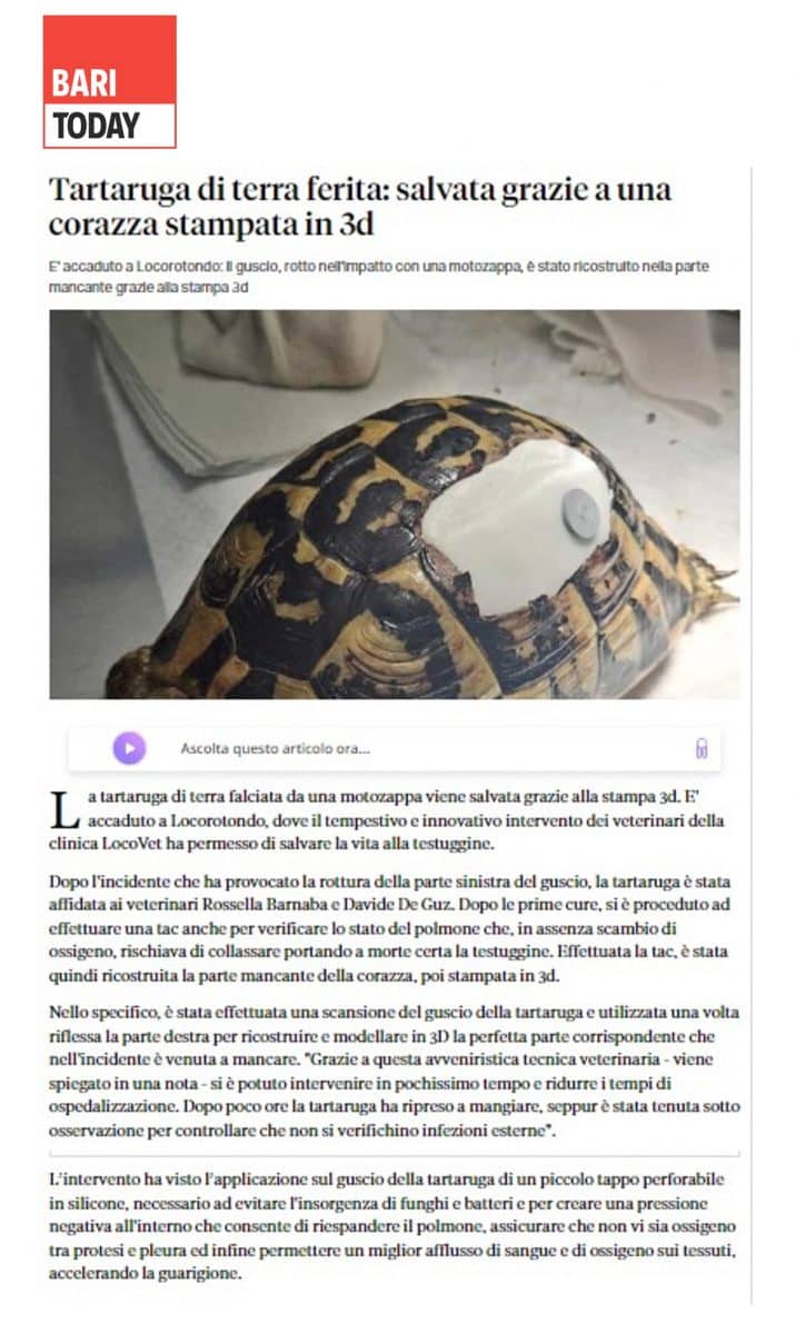 Home » Media & News » BariToday: Tartaruga di terra ferita salvata grazie a una corazza stampata in 3D