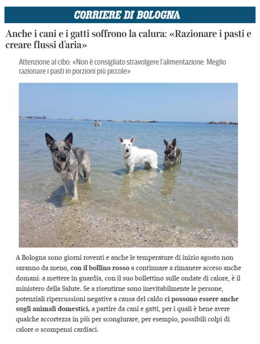 Home » Media & News » Corriere di Bologna.it (Corriere della Sera): Anche i cani e i gatti soffrono la calura “Razionare i pasti e creare flussi d’aria“