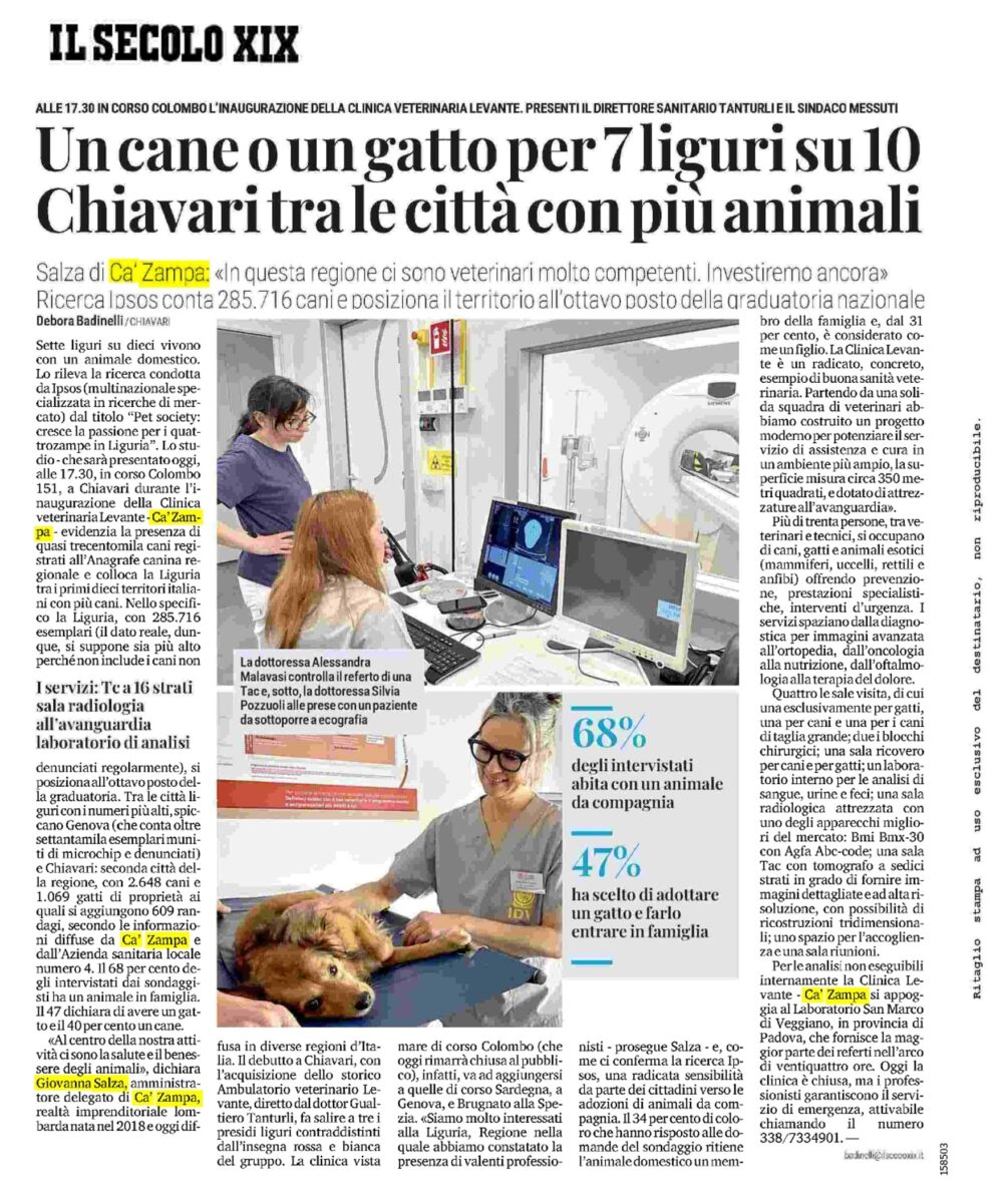 Il Secolo XIX: Un cane o un gatto per 7 liguri su 10. Chiavari tra le città con più animali 10 Maggio 2024 Home » Media & News » Il Secolo XIX: Un cane o un gatto per 7 liguri su 10. Chiavari tra le città con più animali