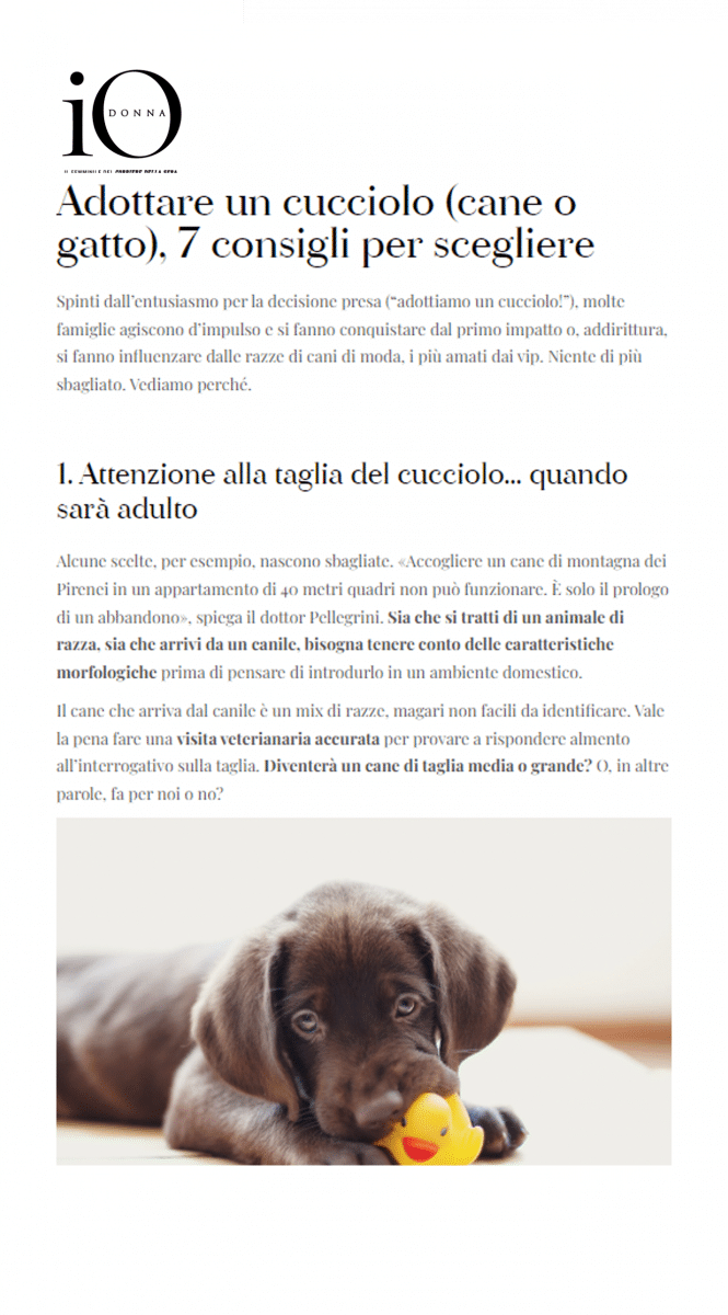 Dalla scelta del cucciolo alla preparazione della casa e della famiglia che lo accoglieranno. Dalle prime vaccinazioni agli errori più comuni che in buona fede commettiamo per coccolarlo. Giuliano Pellegrini, Direttore Sanitario delle cliniche Ca’ Zampa di Milano Portello e Milano Monte Nero, ci accompagna per mano nella grande avventura di adottare un cane o un gatto.