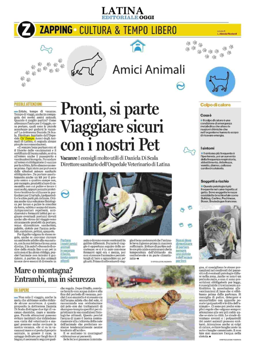 Home » Media & News » Latina Editoriale Oggi: Pronti, si parte. Viaggiare sicuri con i nostri pet