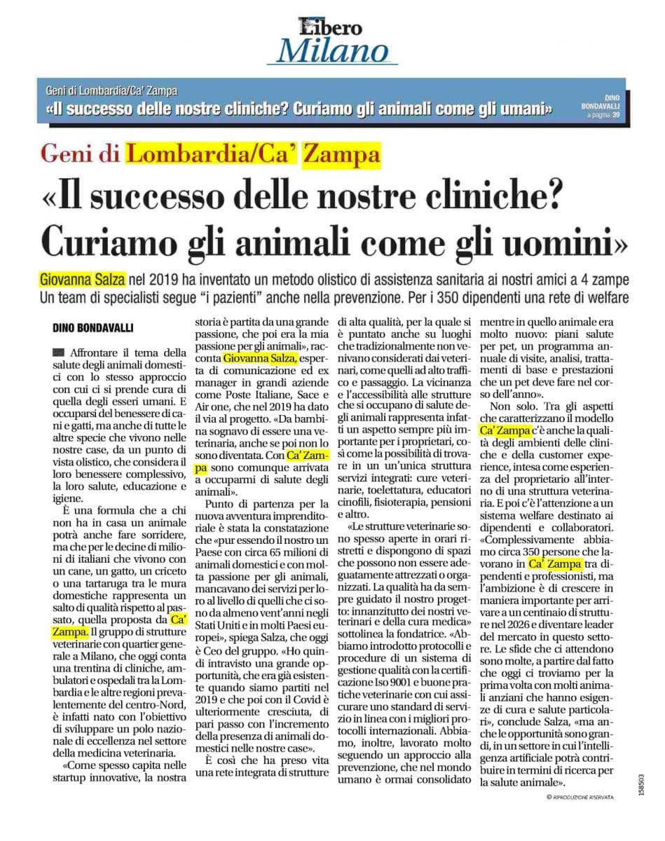 Libero: Il successo delle nostre cliniche? Curiamo gli animali come gli uomini 6 Aprile 2024 Home » Media & News » Libero: Il successo delle nostre cliniche? Curiamo gli animali come gli uomini