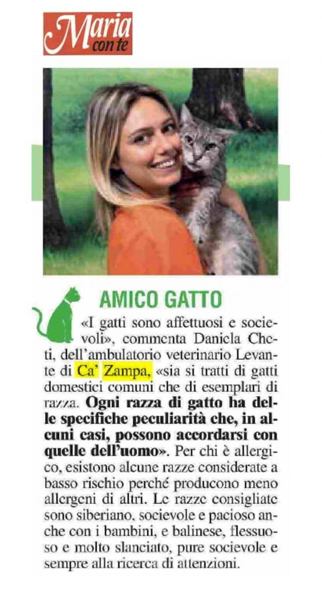 Maria con te: I consigli sui gatti della Dr.ssa Daniela Cheti 3 Marzo 2024 Home » Media & News » Maria con te: I consigli sui gatti della Dr.ssa Daniela Cheti