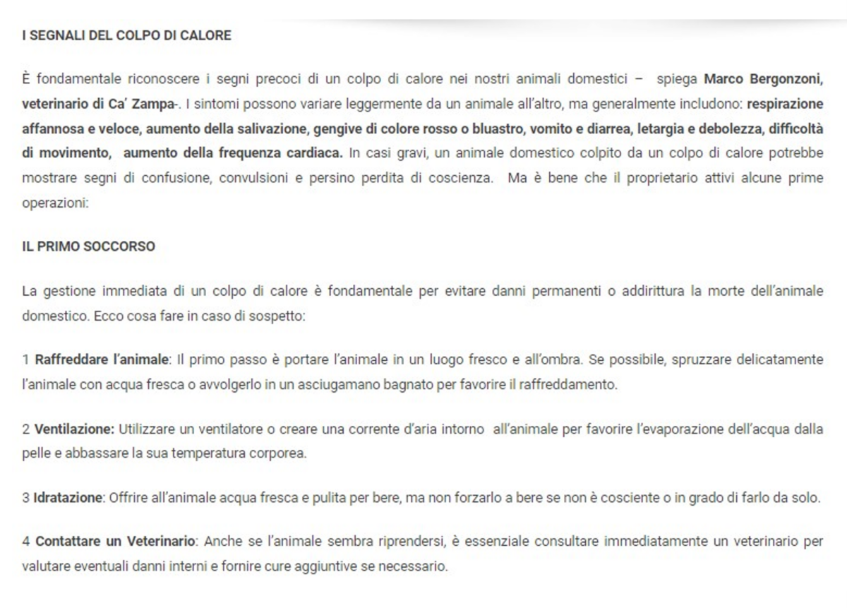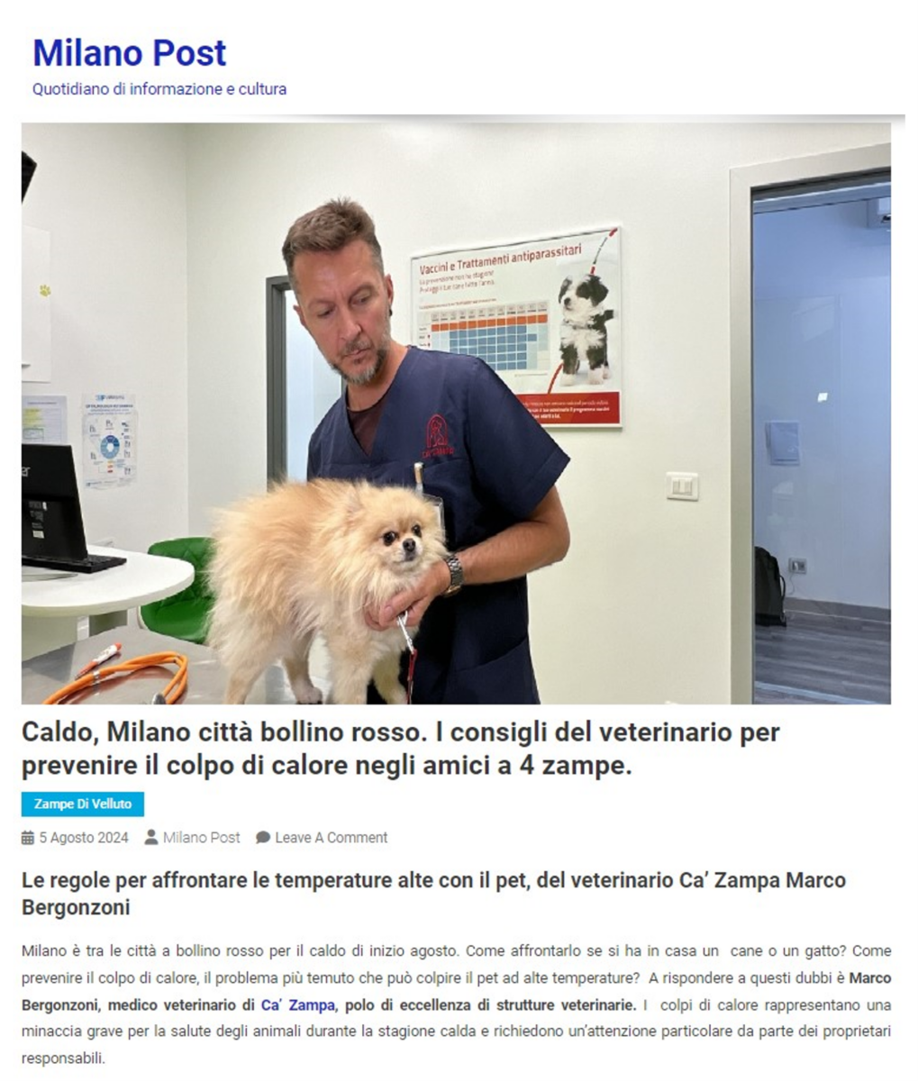 Home » Media & News » Milano Post: Caldo, Milano città bollino rosso. I consigli del veterinario per prevenire il colpo di calore negli amici a 4 zampe