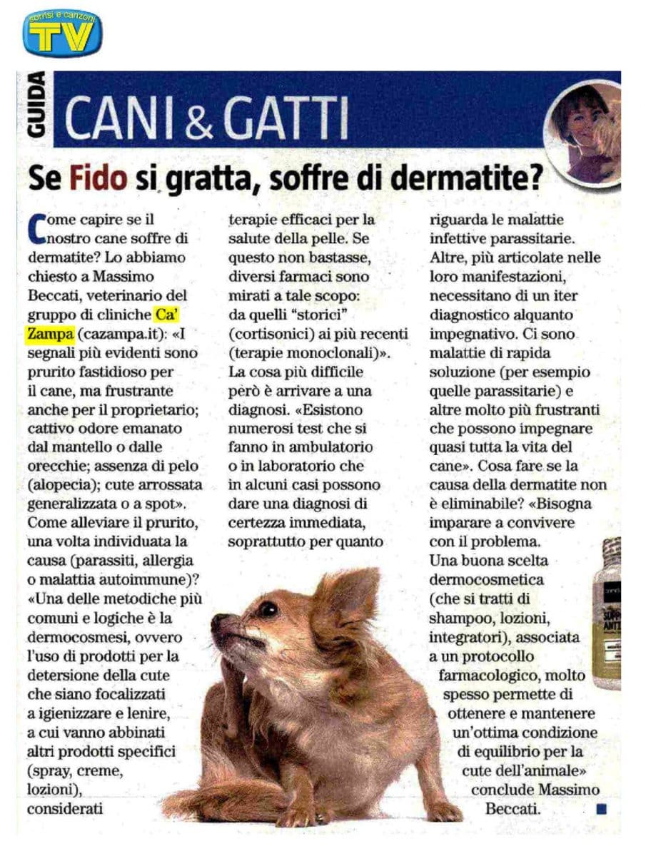 TV Sorrisi e Canzoni: Se Fido si gratta, soffre di dermatite? 12 Febbraio 2024 Home » Media & News » TV Sorrisi e Canzoni: Se Fido si gratta, soffre di dermatite?